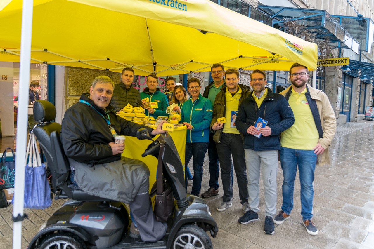 Am 26. Mai sind Europawahlen. Europa steht für Freiheit, Frieden, Demokratie, Menschenrechte, Bildung, Wohlstand- für so viele Chancen! Unser Europa hat einige Macken, einiges muss verbessert und reformiert werden. Wir Freie Demokraten wollen Europa zukunftsfit machen. Wir haben ein tolles Team zur Europawahl. Für unser Europa, die Chancen und unser FDP-Team gehen wir gerne auf die Straße – auch bei strömenden Regen. Und selbst das hat Spaß gemacht! Denn wir sind mit Leidenschaft Europäer!