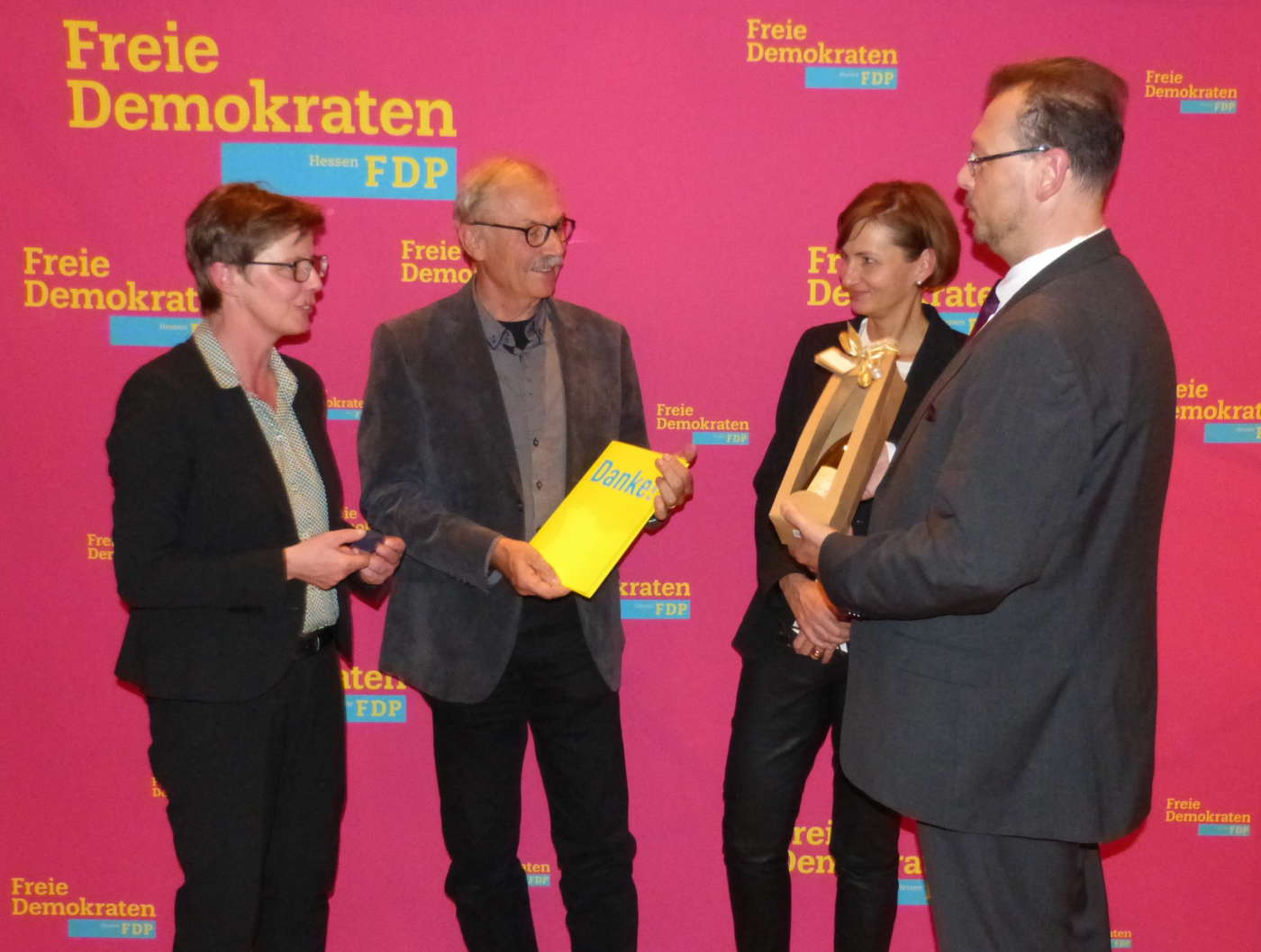 40 Jahre Parteimitgliedschaft erfordert Ausdauer und Bodenständigkeit, die einem durch Höhen und Tiefen im Verhältnis zu seiner eigenen Partei trägt. Diese Ausdauer und Bodenständigkeit gepaart mit Engagement und Überzeugung hat Manfred Zuber aus Beselich immer für seine FDP an den Tag gelegt. Und so ehrte die Generalsekretärin der hessischen FDP Bettina Stark-Watzinger gemeinsam mit der Kreisvorsitzenden Marion Schardt-Sauer und dem Beselicher Ortsvorsitzenden Oliver Herbert das langjährige Mitglied für seine Treue zu den Freien Demokraten. Zuber war als Kind gemeinsam mit seiner Mutter als Vertriebener nach Obertiefenbach gekommen, wo er seitdem lebt. Vor seinem Eintritt in die FDP 1977 studierte er in Darmstadt. Diese Zeit habe ihn sehr geprägt und seine Nähe zur FDP verursacht. 1989 gründete er dann in Beselich den heute noch bestehenden Ortsverband. 21 Jahre gehörte er dem Beselicher Gemeindevorstand an. Auch heute noch ist er ein engagierter Kämpfer für die liberale Sache. Beim Regierungseintritt 2009 war er einer der Mahner, die zuerst erkannt haben, dass diese Konstellation nicht funktionieren würde. Er sollte recht behalten. Sein Durchhaltevermögen über 40 Jahre beschrieb er wie folgt: „Immer wenn es schwierig wurde sagte meine Frau: Warum bist Du da noch dabei? Tritt doch endlich aus!“, so Zuber. Dann habe er immer gesagt. Nein, ich lasse mich von denen nicht austreten. Umso erfreuter zeigte er sich bei seiner Ehrung, dass die FDP heute gut aufgestellt sei, weil sie einen hervorragenden Bundesvorsitzenden, einen sehr guten Landesvorsitzenden und sehr gute Kreisvorsitzende habe. Der Kreisverband ist stolz auf die Erfahrung die langjährige Mitglieder wie Zuber immer wieder einbringe. Auf diese wolle und könne man nicht verzichten, machte Schardt-Sauer deutlich.
